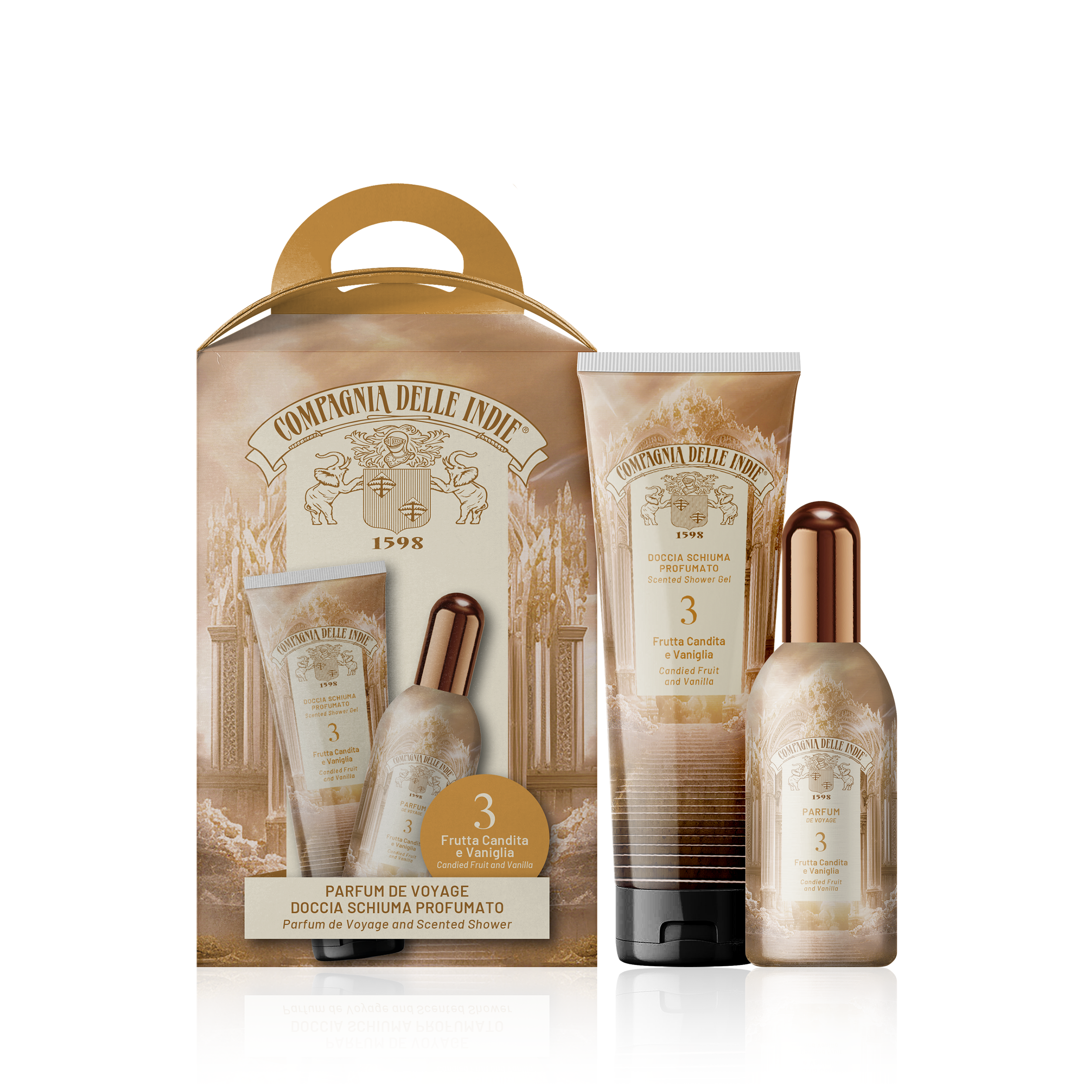 Il Cofanetto 3 racchiude l’essenza di una fragranza iconica di Compagnia delle Indie, Frutta Candita e Vaniglia, reinterpretata in due gesti complementari: la detersione e la profumazione. Il Docciaschiuma Profumato 3 è dermatologicamente testato, deterge delicatamente la pelle senza seccarla, trasformando la doccia in un momento sensoriale avvolgente. La sua formula lascia la pelle morbida e piacevolmente profumata, prolungando l’esperienza olfattiva della fragranza.