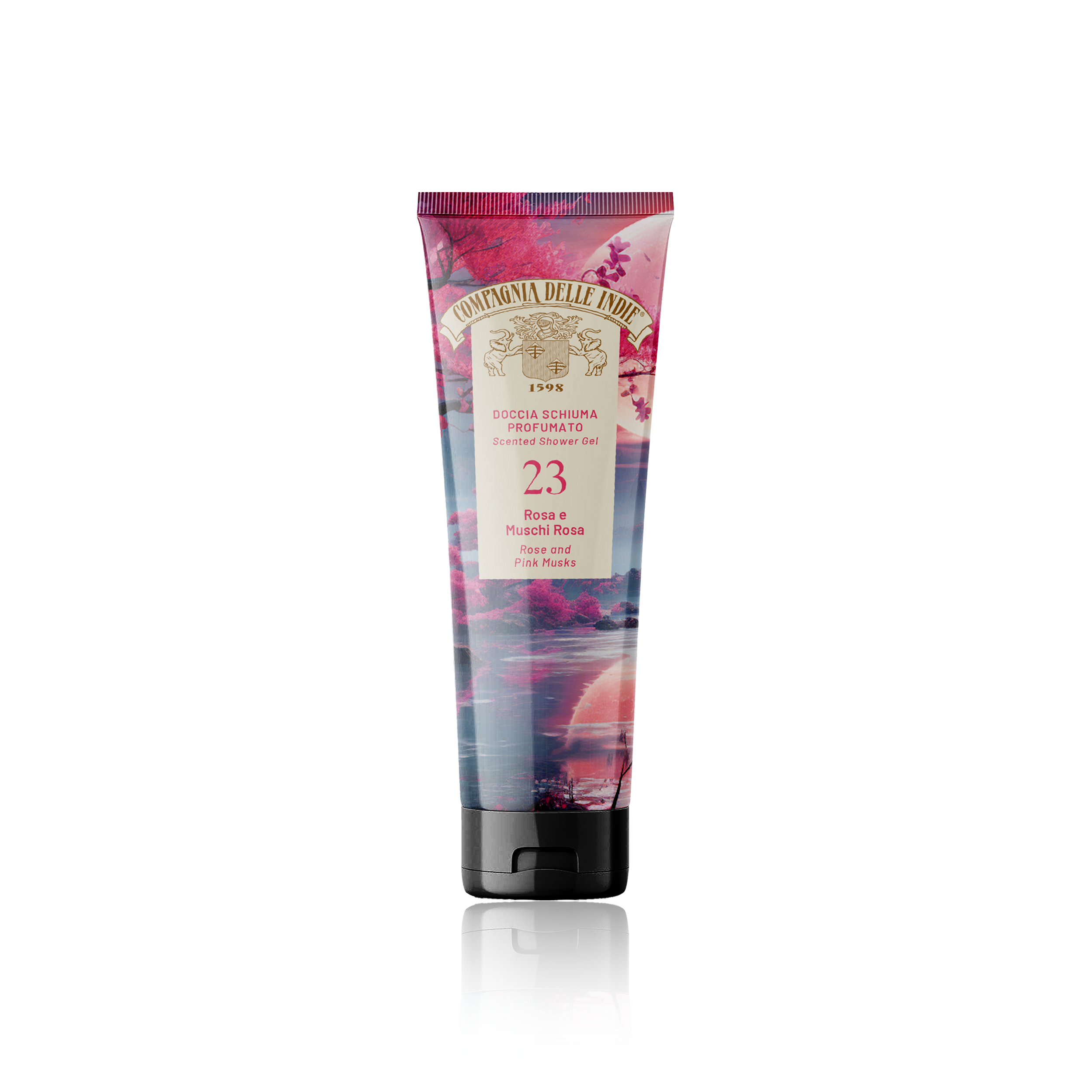 Il Docciaschiuma Profumato Compagnia delle Indie n° 23 è una carezza aromatica che deterge con delicatezza e lascia sulla pelle un velo profumato, trasformando il bagno in un’esperienza sensoriale intensa e rilassante. Una fragranza conturbante e distintiva, dal bouquet fiorito e muschiato che si intreccia alle note profonde di patchouli e legno di cachemire, per poi adagiarsi su un fondo morbido di muschi rosa e ambra.